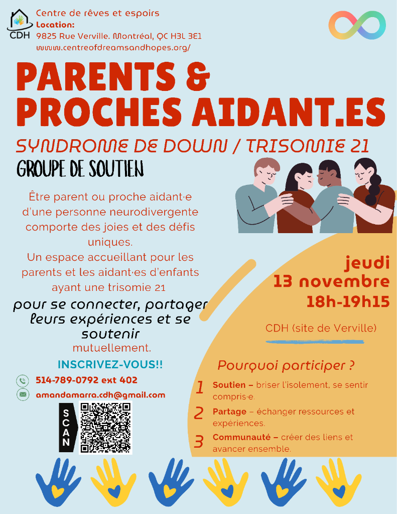 A welcoming space for parents and caregivers of children with Down syndrome to connect with, share experiences, and support one another.