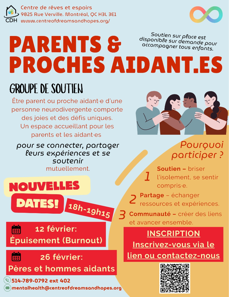 Monthly group focused on a topic (grief, self-care, burnout…) or neurodivergent intersection (Down Syndrome, GDD, ADHD, Autism..).